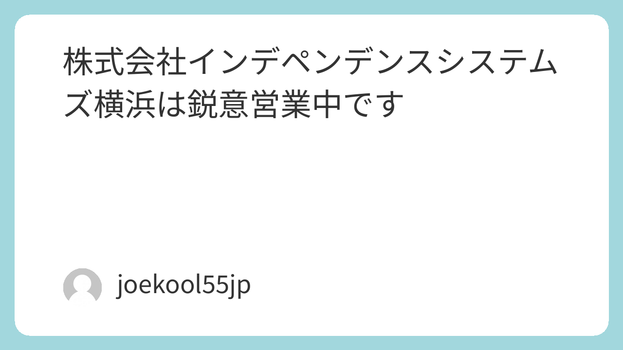 株式会社インデペンデンスシステムズ横浜として鋭意営業中です。