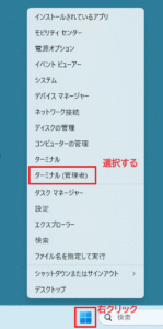 スタートボタン –> 右クリック –> ターミナル(管理者)