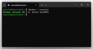 Docker のバージョンが表示されれば、Docker Desktop → WSL2 → Ubuntu の連携が正常です。
