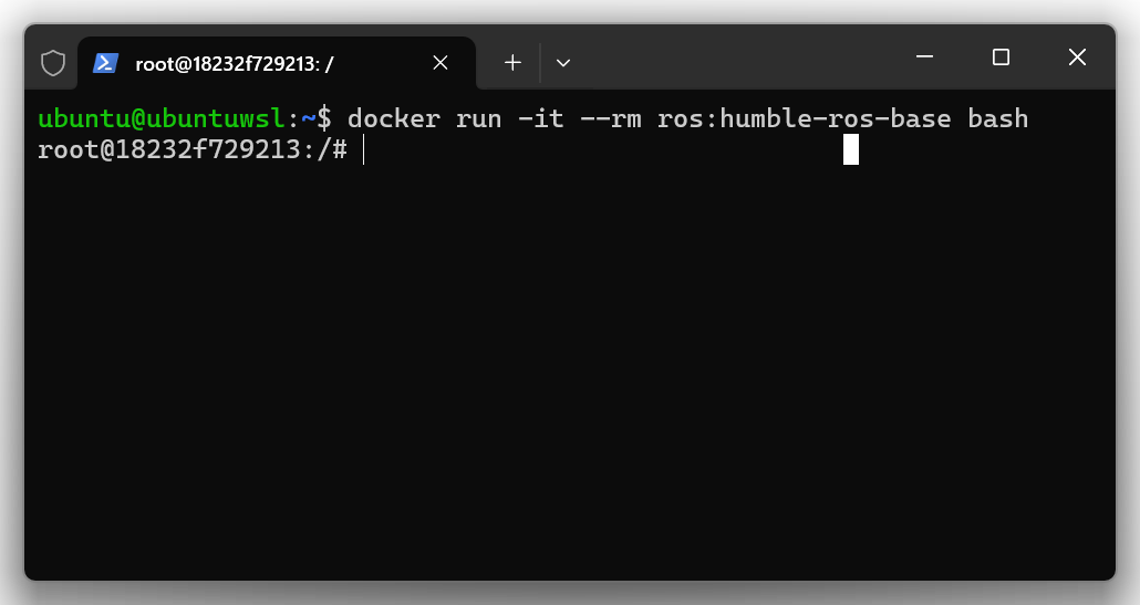 まずは公式の最小イメージ ros:humble-ros-base を起動します。