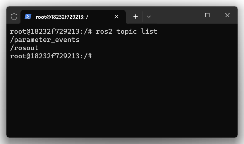 ここまで動作すれば、ROS2の基本コマンドが Windows上のUbuntuのROSコンテナで正しく動いていることが確認できます。