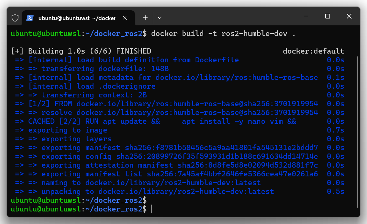これで nano/vim入りの ROS2 開発用イメージが完成します。