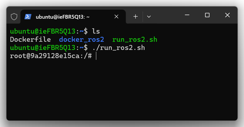 コマンドプロンプトの色と文字で、wslのUbuntuかROS2コンテナか判断出来ると思います。