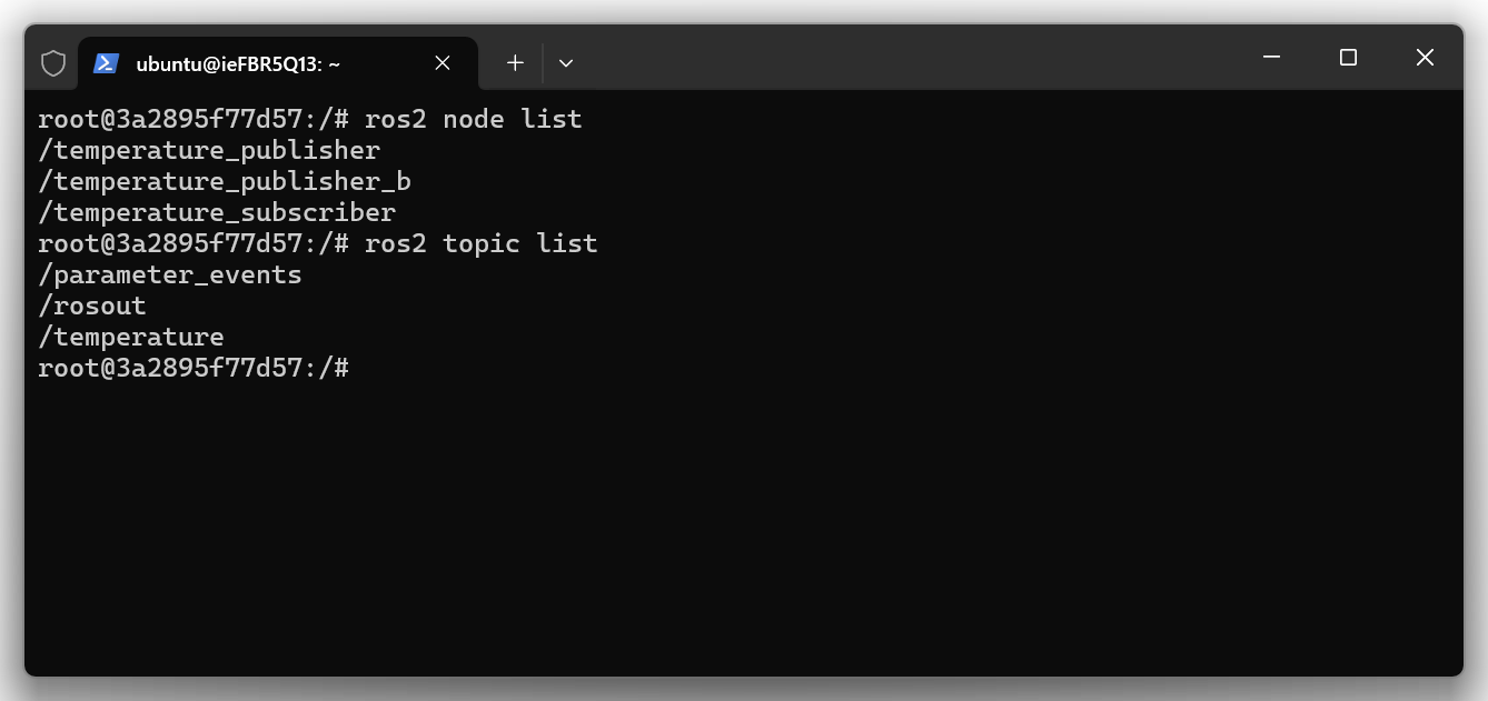 本記事は、前回構築した「Windows 11 + WSL2 + Docker Desktop」で ROS2(Humble)が実行できる環境の続きです。今回は Docker コンテナ内で ROS2 のノードを実装し、2種類の仮想温度センサー(乱数)と subscriber を動かして、ROS2 の基本である「ノード」「トピック」「publisher」「subscriber」を体験します。