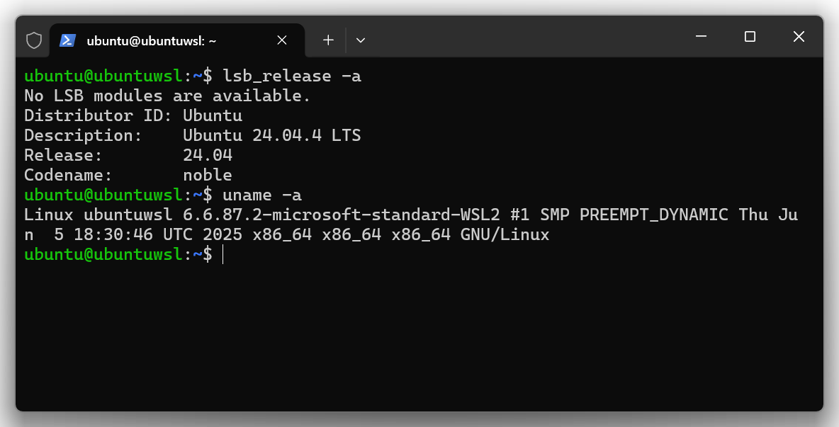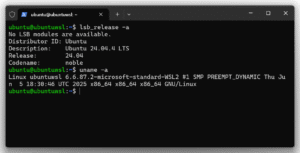 lsb_release -a と uname -r のスクリーンショットの例です。